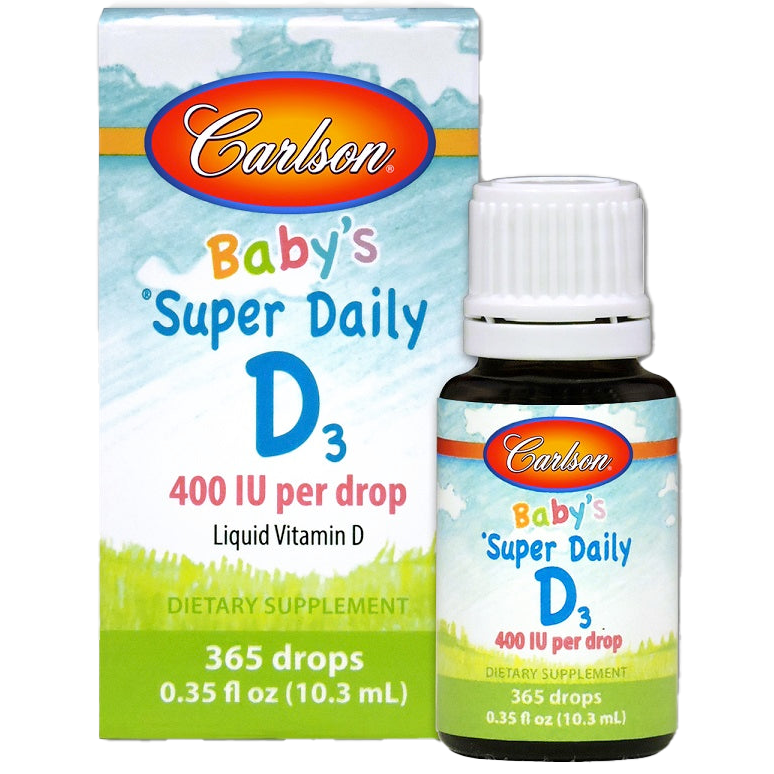 • Introducing Carlson Labs Baby's Super Daily D3, a premium food supplement designed specifically for infants and children. Each bottle provides 400 IU (10 mcg) of Vitamin D3 per drop, crucial for fostering healthy growth and development.